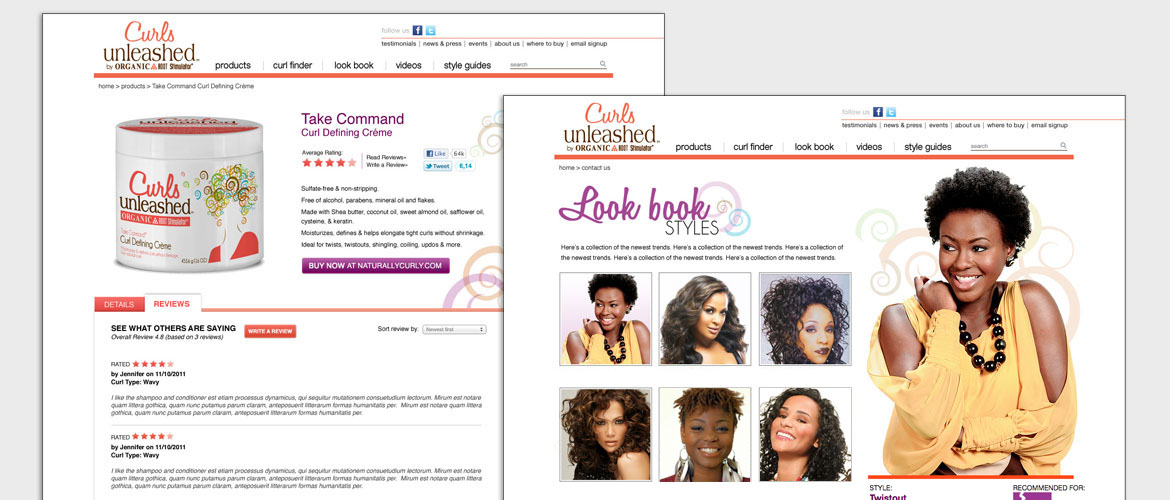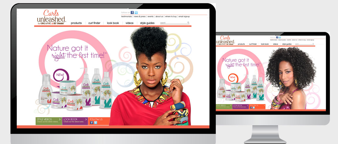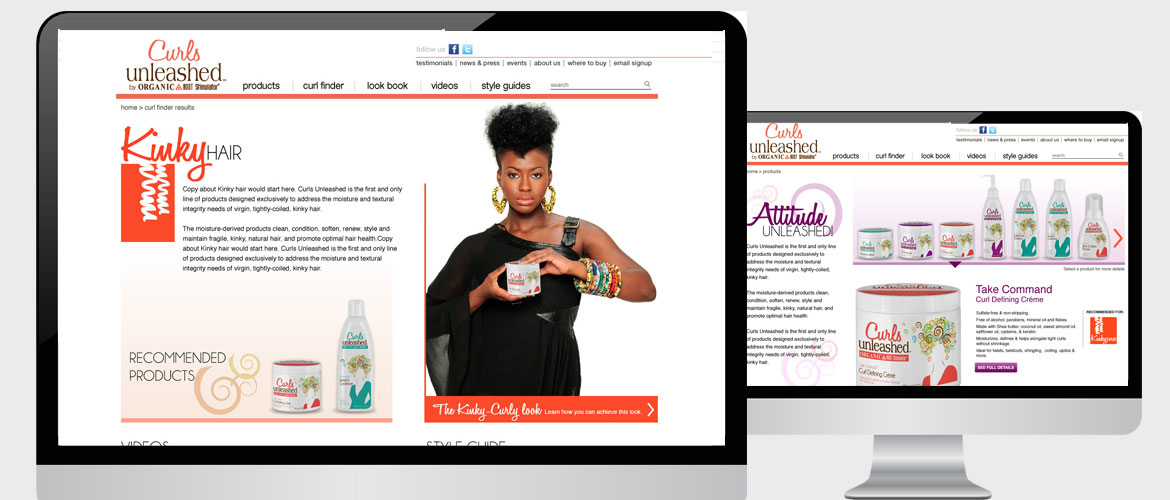 Digital Instincts's solution for Namaste Labs was to create an easy-to-update site using a customized WordPress framework. Curls Unleashed was able to update the site with News, model appearances, looks, videos, FAQs as well as a Store Locator to help users locate and purchase thier products at retailer locations. Robust information on how to use the product via videos and step-by-step how-tos were also included.