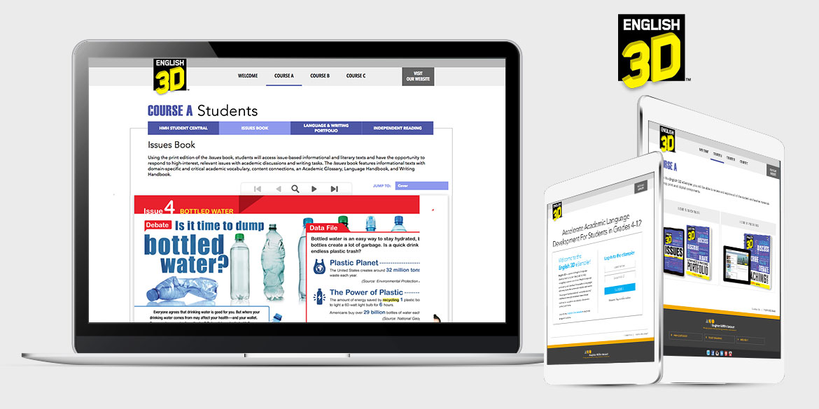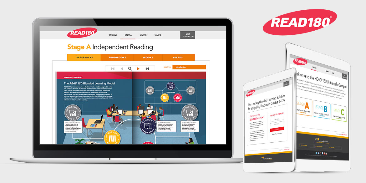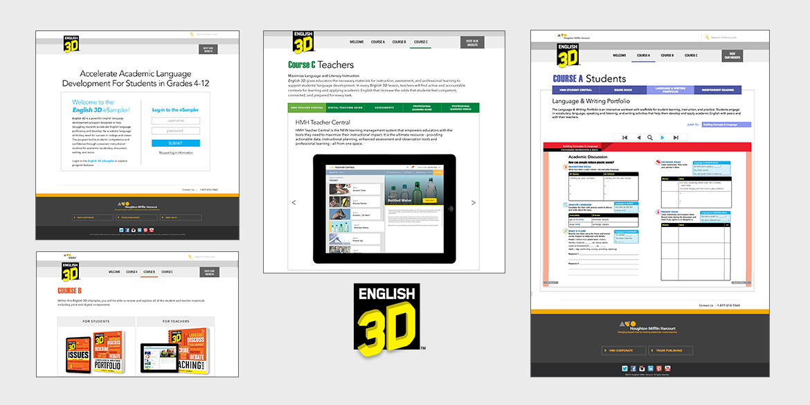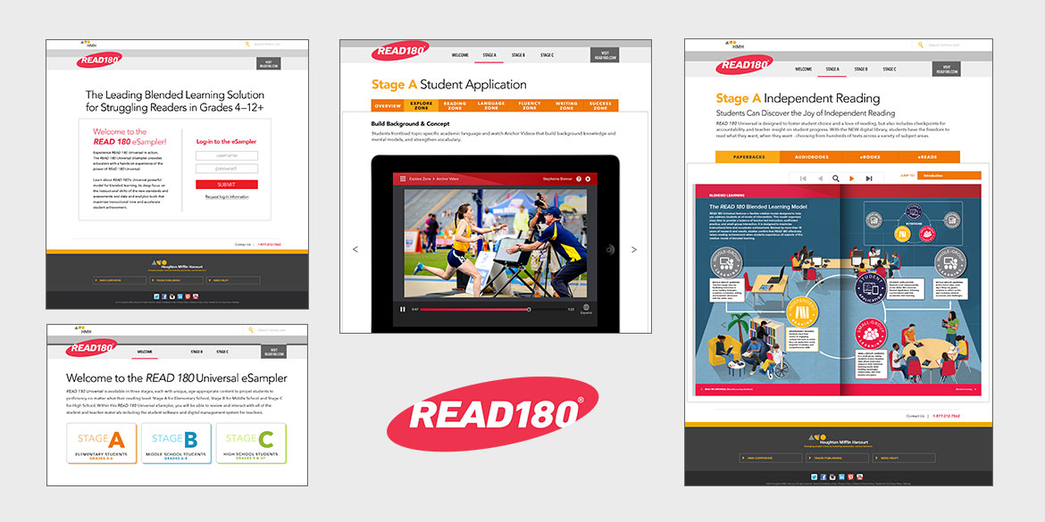 Digital Instincts built 3 sister websites for HMH's eSamplers. These eSamplers provide a resource for potential customers of HMH's popular programs (READ 180, Do the Math and English 3D) to browse through program assets. A custom coded flipbook was also created to allow users to browse, zoom and review Teacher Guides, Course books and support materials via a virtual eReader experience as well as scroll through high res screenshots of their tablet app in a carousel.