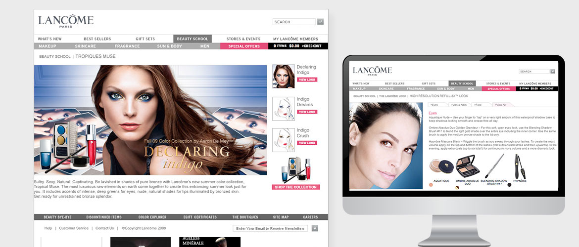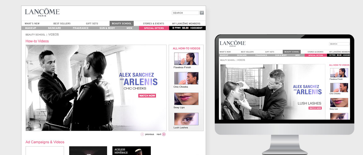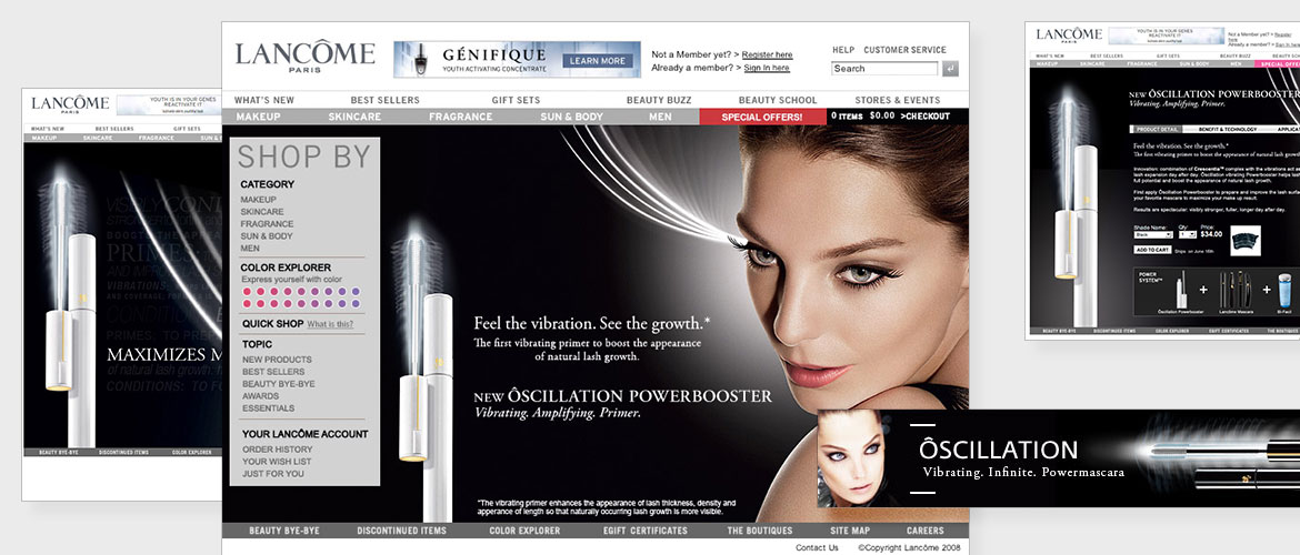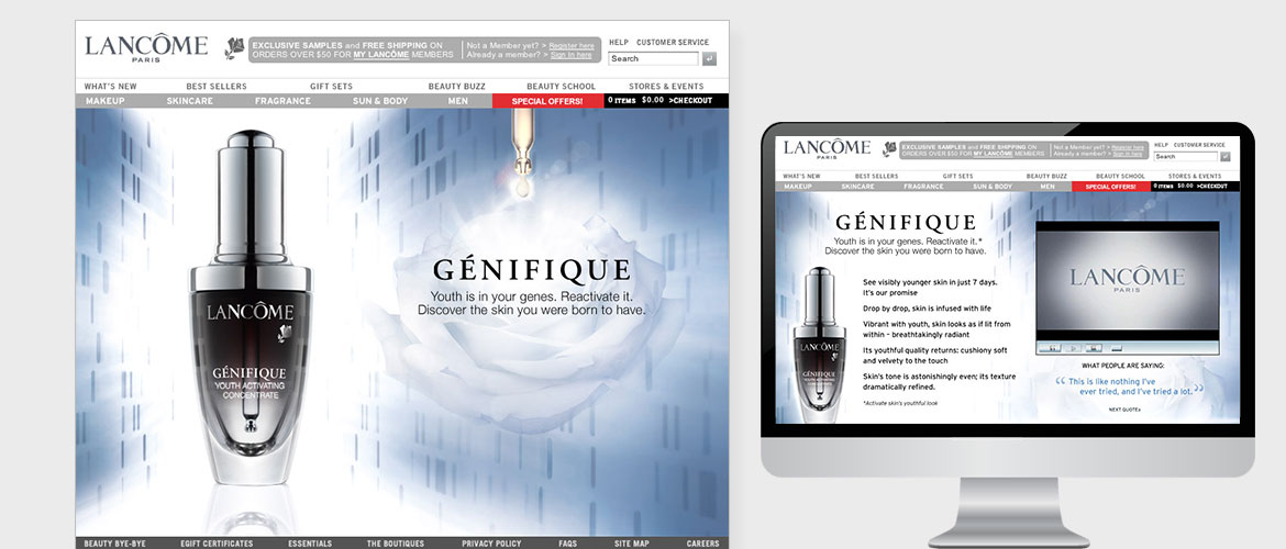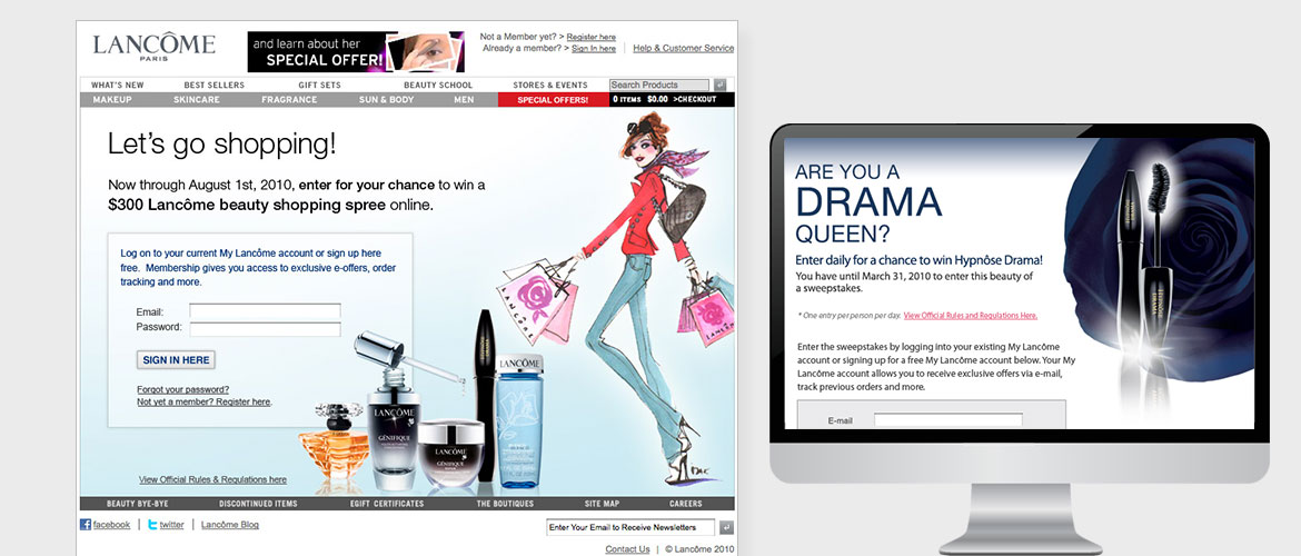 Digital Instincts was the digital AOR to Lancôme from 2003-2010, having worked with internal teams to be a digital strategy and creative resource for their bi-weekly emails, banner ads, various retailers marketing materials, site imagery, including homepage and landing pages during that time. Our agency created all design layouts, animations, sweepstakes as well as social imagery to support their active national ads featuring celebrity spokespeople such as Drew Barrymore, Julia Roberts, Kate Winslet, to name a few. We supported Lancôme in their interactive media needs and managed and coordinated digital marketing efforts enabling them to achieve greater results.