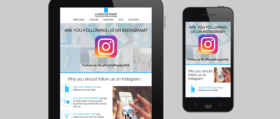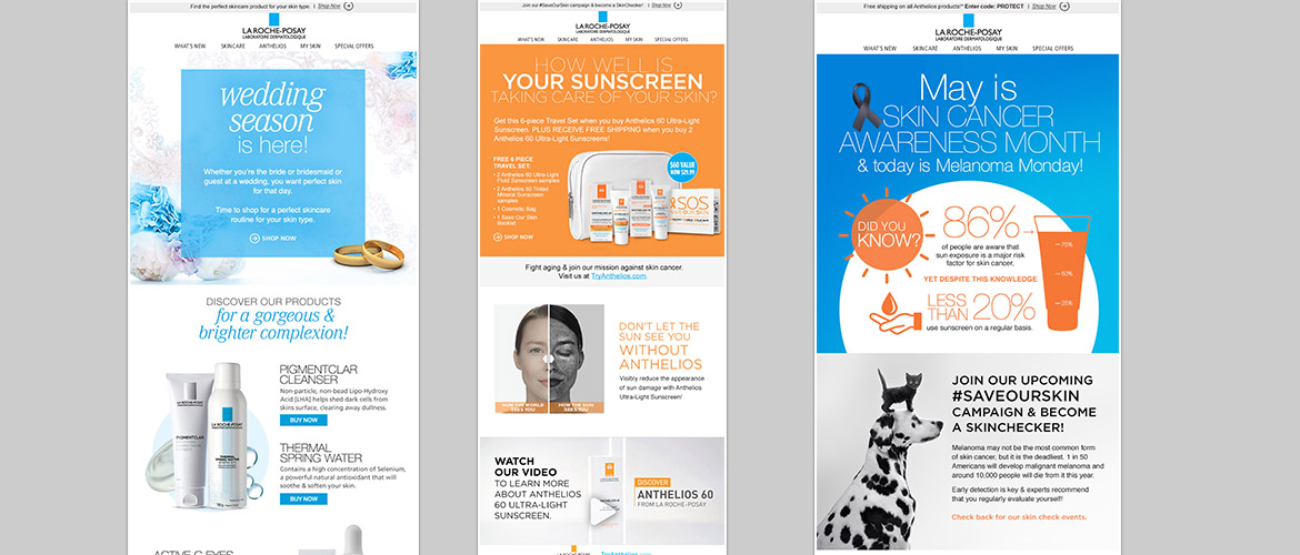 Serve the La Roche-Posay brand marketing teams with Digital Instincts creative agency talent to design monthly emails campaigns that address new product launches, cross sell offers, educational materials, videos, A/B messaging that is accessible to anyone, anywhere regardless of device or platform.