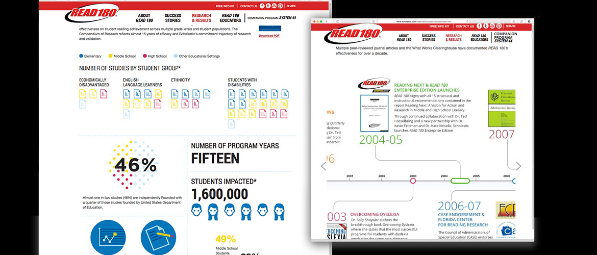 Digital Instincts worked with Scholastic's Educational Technology division to assist in the redesign and relaunch of one of Scholastic's top reading programs for struggling readers. DI provided UX & design support as well as full development and SEO services. This has resulted in a beautiful responsive website and intuitive navigation which facilitates a quick understanding of the ins and outs of Scholastic's flagship brand.